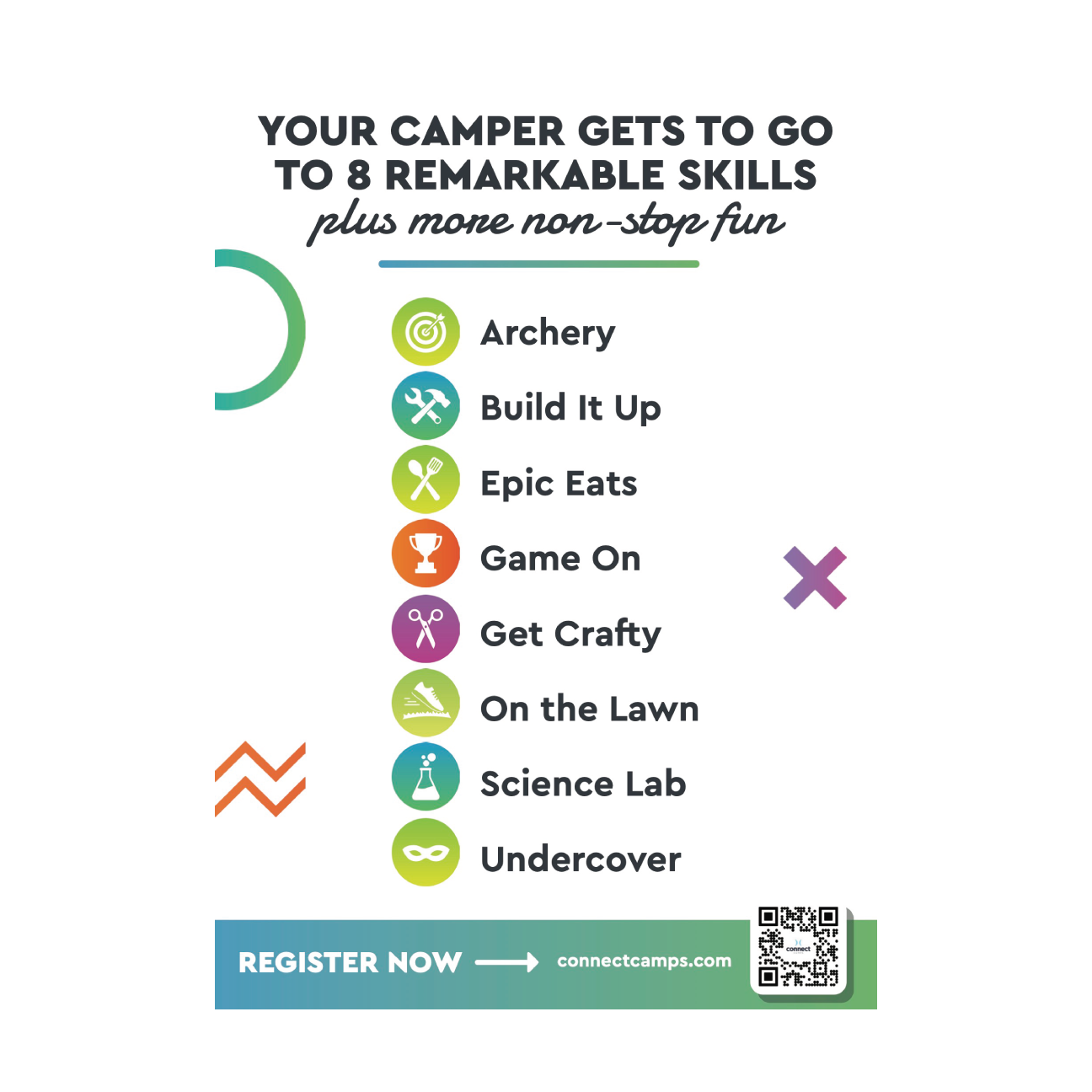 Customizable to reflect the unique spirit of your community, this piece showcases the wide array of skills available for campers to explore. Elevate your camp experience with this engaging and informative tool!
